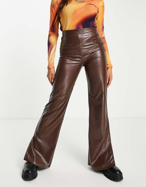 Heartbreak – Brązowe spodnie z szerokimi nogawkami z poliuretanu