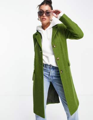 Helene Berman – Classic – Zielony płaszcz o uczelnianym kroju z mieszanki wełny