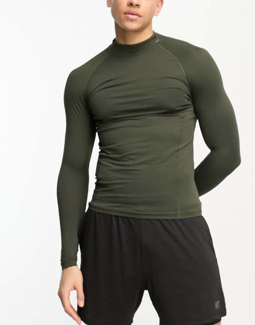 HIIT – Dopasowany top sportowy z golfem i długimi rękawami w kolorze khaki