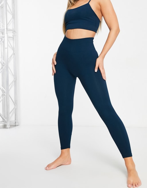 HIIT – Granatowy prążkowany biustonosz i legginsy