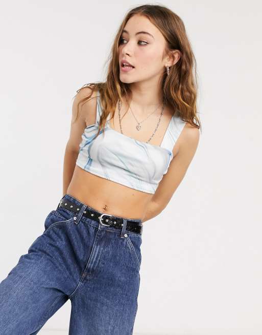 HIIT – Niebieski krótki top do jogi w marmurkowy wzór, część zestawu