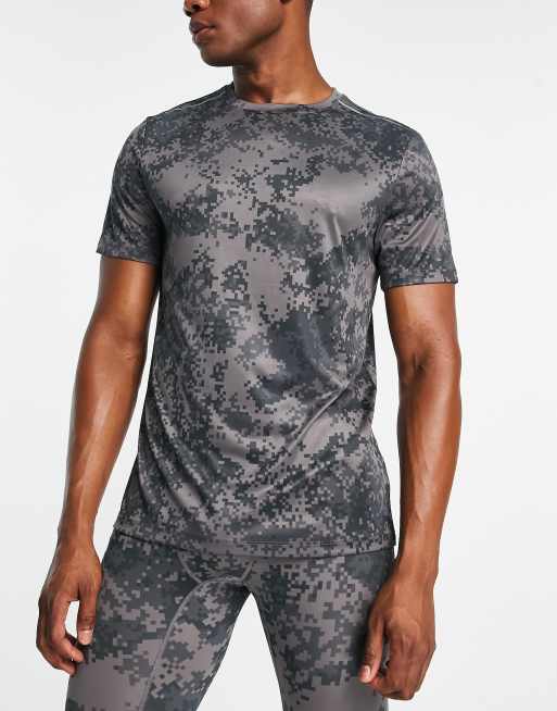 HIIT – Sportowy szary T-shirt z nadrukiem na całej powierzchni