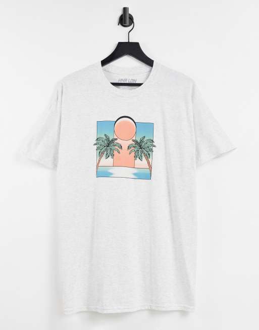 HNR LDN – T-shirt oversize z symetrycznym nadrukiem palm na przodzie