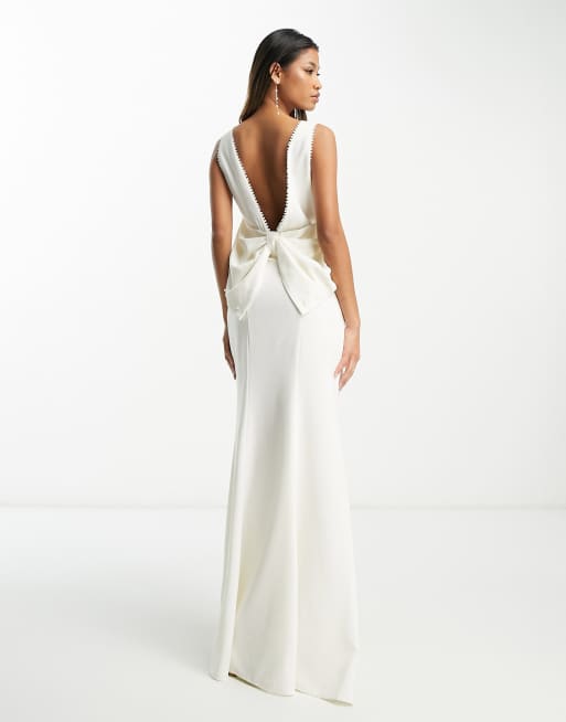 Hope & Ivy Bridal – Sukienka maxi w kolorze kości słoniowej z kokardą na plecach