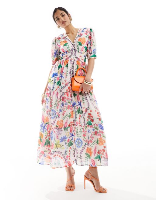 Hope & Ivy – Sukienka midi w jaskrawy patchworkowy wzór