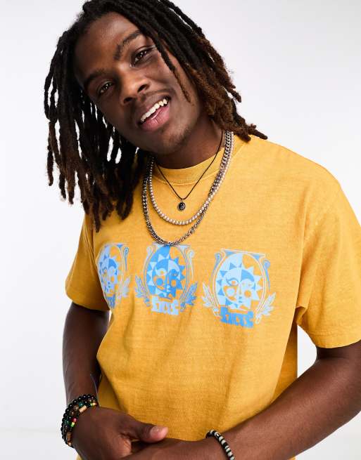 HUF – Sun God – Pomarańczowy T-shirt z nadrukiem na piersi i efektem sprania