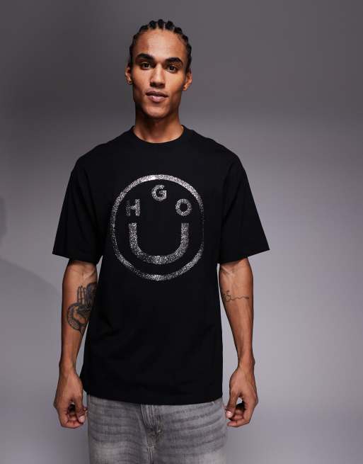 HUGO Blue – Czarny T-shirt oversize z brokatowym logo