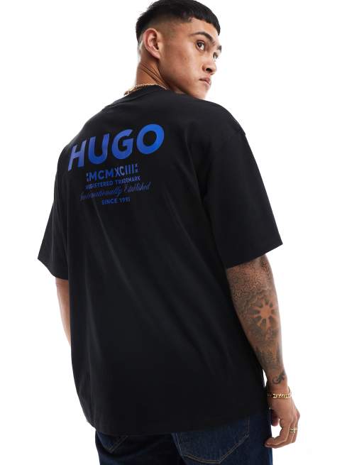 HUGO Blue – Nalono – Czarny luźny T-shirt