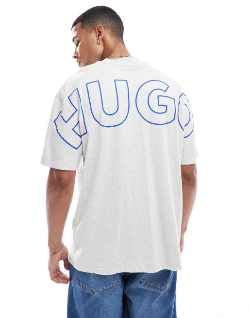 HUGO Blue – Nouveres – Szary T-shirt o luźnym kroju