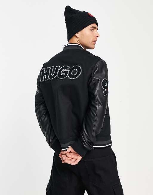 HUGO – Babuc2241 – Czarna kurtka varsity w stylu retro