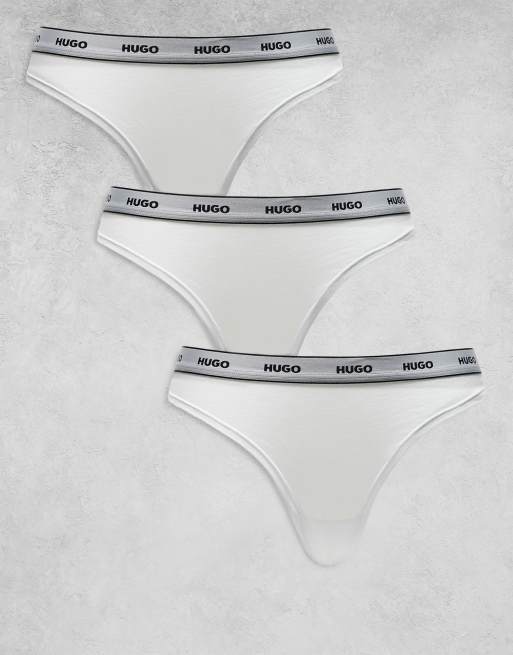 HUGO Bodywear – Zestaw 3 par białych stringów z logo w talii