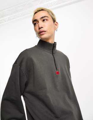 HUGO – Durty – Szara bluza dresowa z suwakiem pod szyją