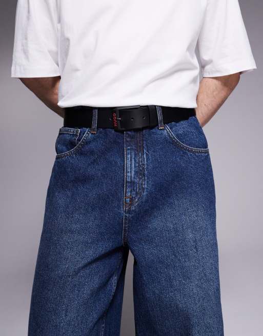 HUGO Red – Gelio – Czarny skórzany pasek z matową klamrą z logo