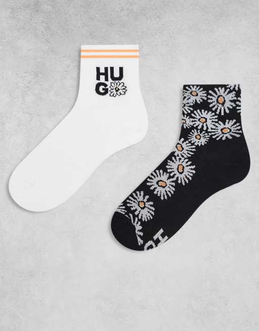 HUGO Red – Zestaw 2 par skarpetek: z logo i we wzór w stokrotki