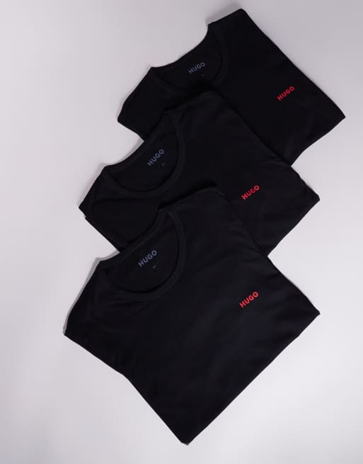 HUGO Red – Zestaw 3 czarnych domowych T-shirtów z długimi rękawami i logo