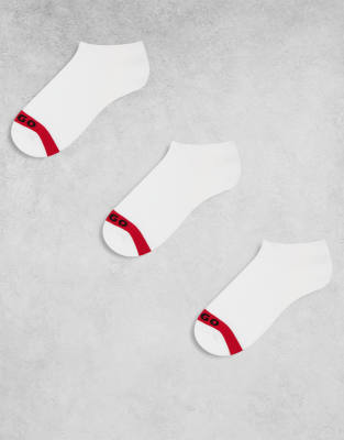 HUGO Red – Zestaw 3 par białych skarpetek-stopek z taśmą z logo