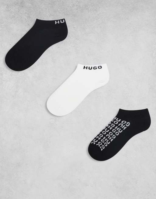 HUGO Red – Zestaw 3 par skarpetek do kostki w kolorach czarnym i białym z logo