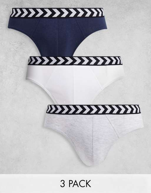 Hummel – Zestaw 3 par slipów w różnych kolorach z pasem w jodełkę