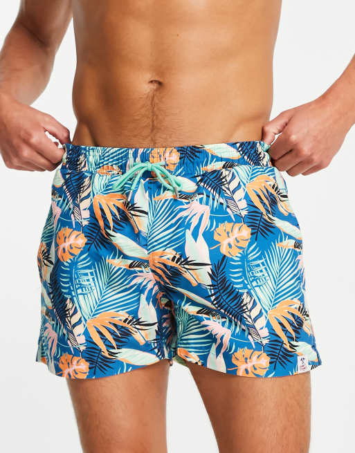 Hunky Trunks – Niebieskie szorty kąpielowe w tropikalny wzór