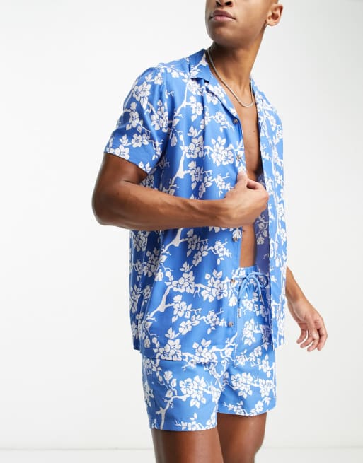 Hunky Trunks – Plażowy zestaw w niebieski kwiatowy wzór