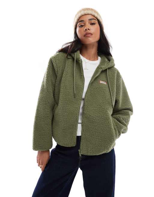 Hunter – Bonelle – Zielona kurtka z kożuszka z kapturem