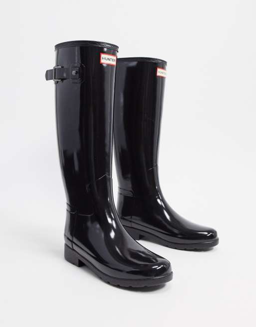 Hunter – Czarne wysokie kalosze z eleganckim połyskiem