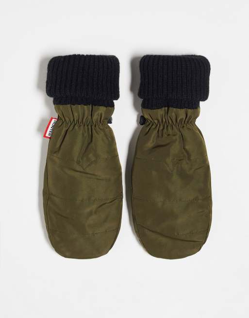Hunter – Pikowane czarne rękawiczki unisex w kolorze khaki z jednym palcem i logo