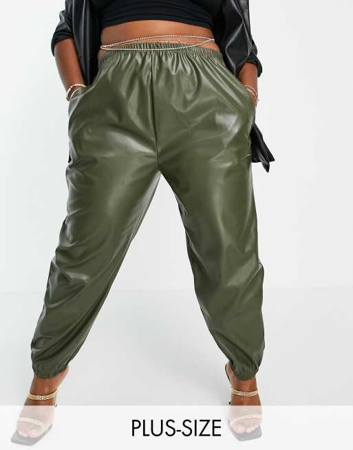 I Saw It First Plus – Spodnie z imitacji skóry w kolorze khaki