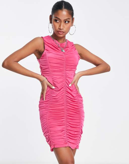 I Saw It First – Marszczona sukienka midi typu bodycon w kolorze intensywnego różu