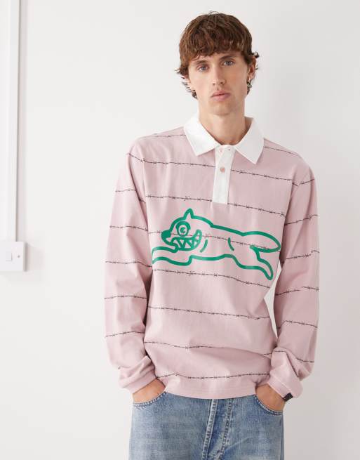 Ice Cream – Jasnoróżowa koszulka polo w stylu rugby z nadrukiem drutu kolczastego i biegnącego psa