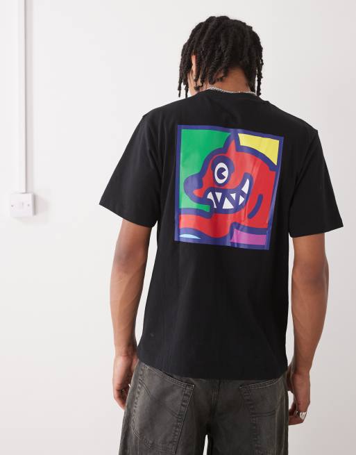 ICECREAM – Czarny T-shirt z krótkimi rękawami i nadrukiem biegnącego psa w stylu pop art