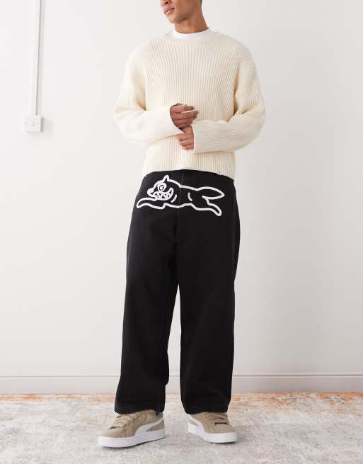ICECREAM – Triple Scoop – Czarne jeansy o luźnym kroju z nadrukiem z biegnącym psem
