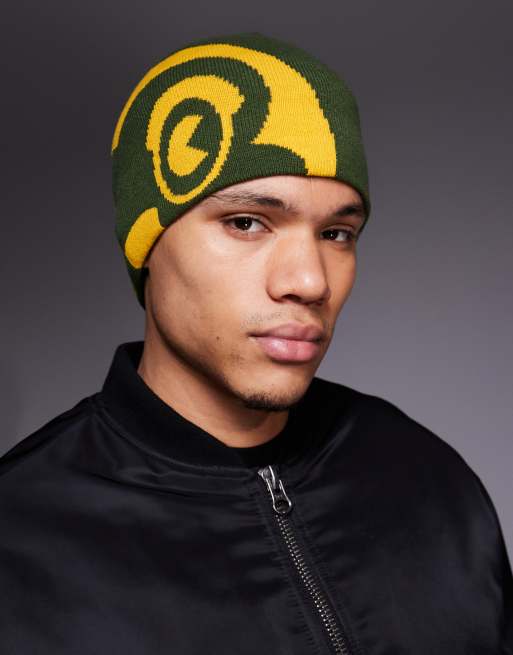 ICECREAM – Zielono-żółta czapka beanie z motywem uśmiechu