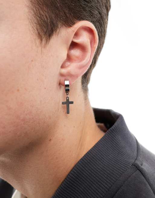 Icon Brand – Pojedynczy kolczyk-koło ze stali nierdzewnej z wisiorkiem krzyżem