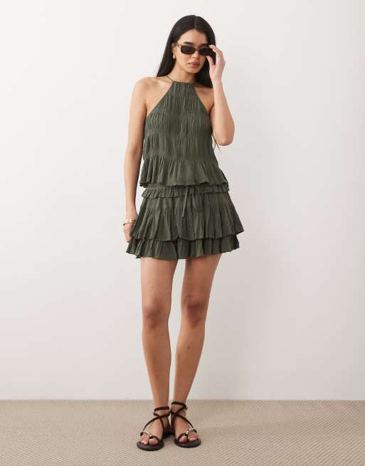 Iisla & Bird – Oliwkowa spódnica mini z falbankami