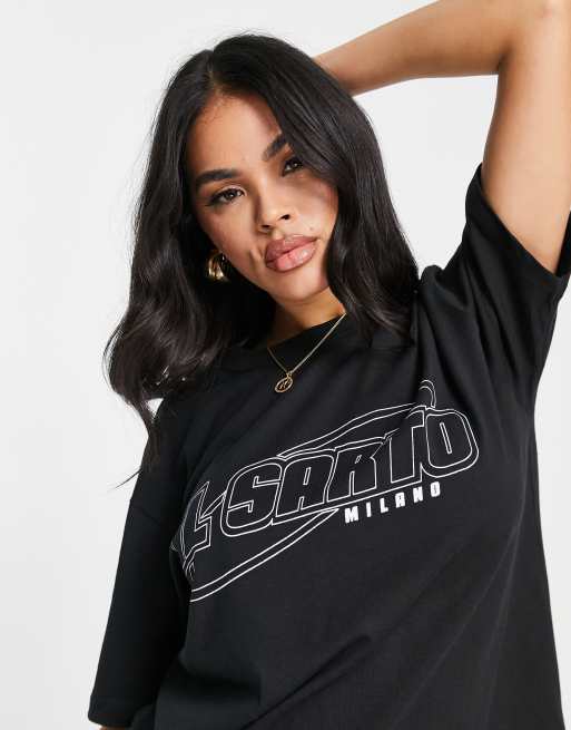 Il Sarto – Czarny T-shirt oversize z logo, część zestawu