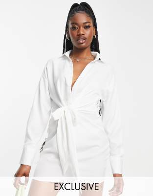 In The Style – Biała sukienka koszulowa z węzłem z przodu – tylko w ASOS