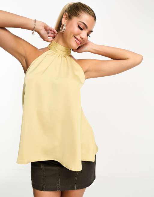 In The Style Exclusive – Luźny satynowy top z dekoltem typu halter w złotym kolorze