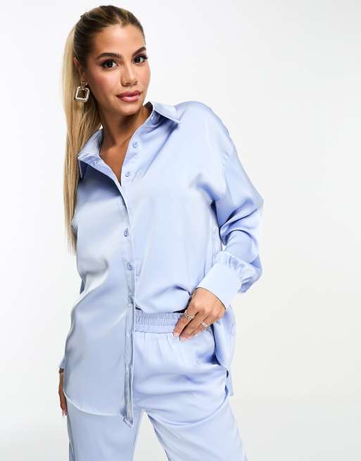 In The Style Exclusive – Niebieska satynowa koszula oversize, część zestawu
