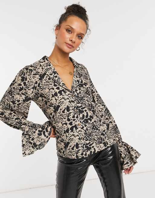 In The Style ✗ Shaughna – Top z głębokim dekoltem, rozszerzanymi rękawami i wzorem zwierzęcym
