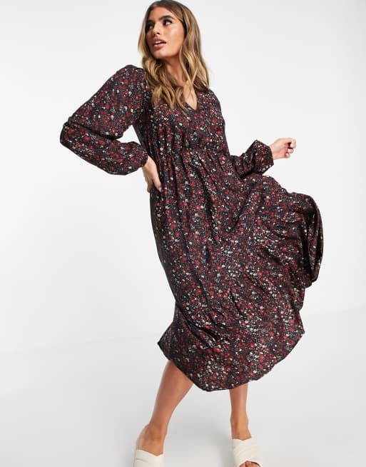 In The Style x Jac Jossa – Czerwona sukienka warstwowa midi z balonowymi rękawami