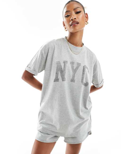 In The Style x Perrie Sian – Szary T-shirt z logo NYC