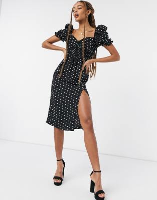 In The Style x Shaughna – Sukienka midi z bufkami, dekoltem w kształcie serca i wzorem w grochy
