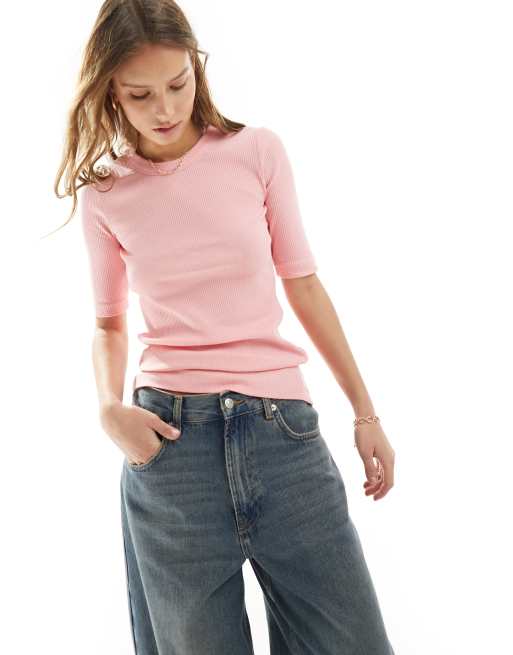 InWear – Dagna – Miękki prążkowany top w jasnoróżowym kolorze