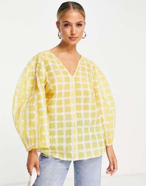 InWear – Malva – Żółta bluzka z obszernymi rękawami w kratkę vichy
