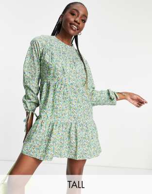 Influence Tall – Bawełniana sukienka mini z długim rękawem i drobnym kwiatowym wzorem