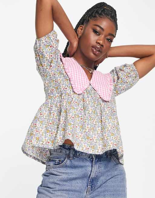 Influence – Kolorowa bluzka z kontrastowym kołnierzykiem pensjonarskim