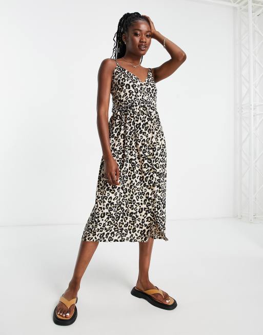 Influence – Sukienka midi na ramiączkach z bawełnianej popeliny we wzór w cętki