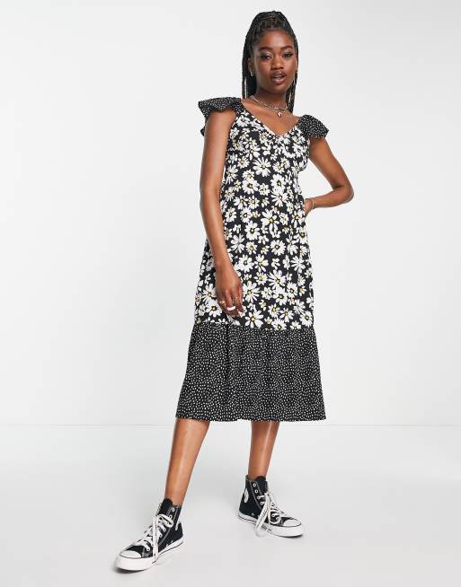 Influence – Sukienka midi z falbanką na rękawach w mieszany wzór w stokrotki i groszki