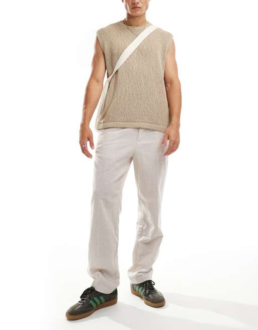 Jack & Jones – Beżowe luźne chinosy ze zwężanymi nogawkami z domieszką lnu
